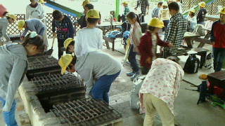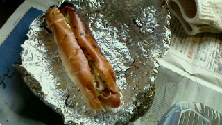 美味しホットドックができました。昼食が終わり、かまどの片付けをしました。