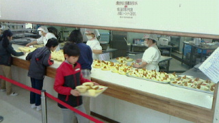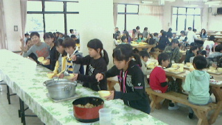 少年自然の家での最後の食事です。たくさんの子が、おかわりをしています。