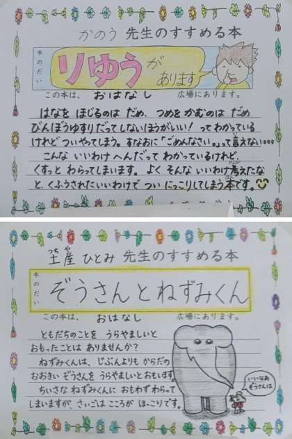 コスモス読書週間にあわせて、先生からのおすすめの本が紹介されています。本といっしょに、本の紹介文が掲示されています。みなさんに少しずつお伝えします。どの本も鳥居松小学校の図書室にあるので、借りて読んでみてください。来保護者の方も、ご来校の際には是非ご覧ください。