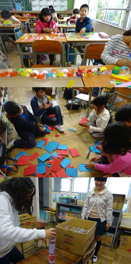 11月7日(火)、10日に行う「いちょうまつり」の準備をしました。今日は、3〜6年生が、ゲーム屋さんの案内看板や飾りづくり、ゲームで必要な道具などの制作をしました。