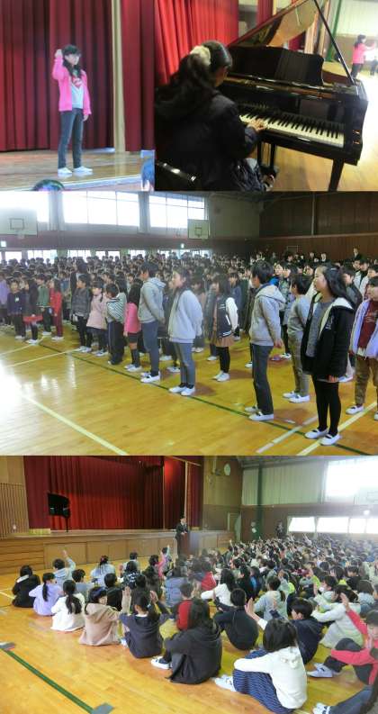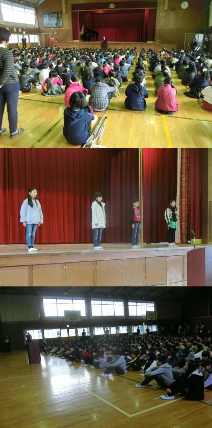 1月9日(火)、3学期の始業式を行いました。はじめに、校長先生の話を聞きました。そして、5年生の代表の人から、2学期にがんばったことと3学期の目標を発表する『誓いのことば』をしてもらいました。テスト勉強をしっかりとする、力を合わせて大なわ跳び大会をがんばる、奨励会テストで満点を取る、計算を正確に早くできるようにする、5分前行動をする、はやぶさなど難しいなわとび技に挑戦することなどが発表されました。6年生女子の指揮とピアノ伴奏で校歌を歌って式を終わりました。最後までしっかりと話を聞くことができ、新しい年を迎えて気持ちを引き締めて式に臨んでいるようすがよく伝わってきました。