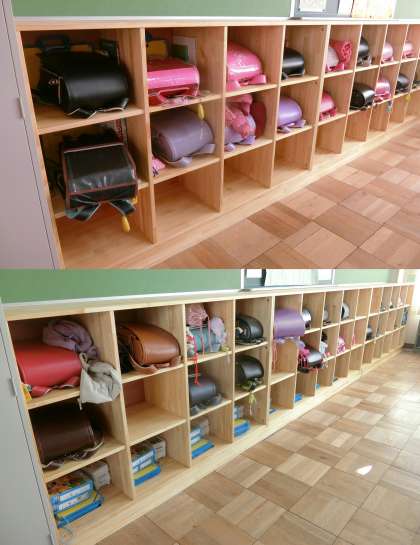 南館の1・2・5年生のロッカーが新しくなりました。ランドセルの出し入れもスムーズにでき、いろいろな持ち物を入れることができます。