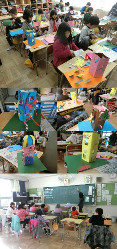 1月10日(水)、2年生の図画工作、かえで・もみじ・いちょう学級の学級活動のようすです。2年生は、『まどをあけたら』の作品がもうすぐ完成します。かえで・もみじ・いちょう学級は、3学期の係活動決めをしていました。
