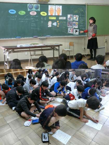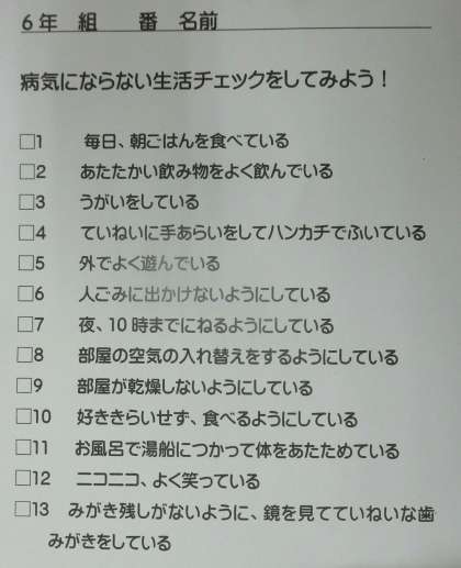 1月15日(月)、6年生の発育測定のようすです。測定の後に、保健の先生といっしょにインフルエンザの原因と予防方法を考えました。そして、病気にならない生活について確かめました。