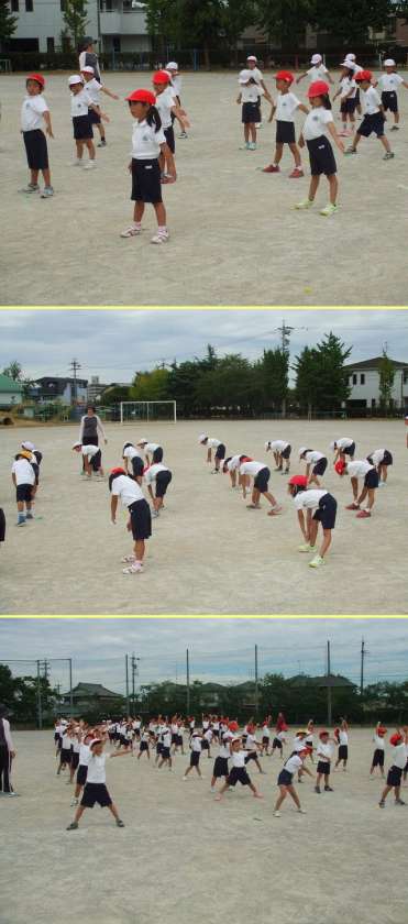 9月9日(水)5時間目に1年生は運動会に向けて、ラジオ体操の練習をしました。1年生にとって初めての運動会です。みんな真剣に先生の注意事項を聞き、体を大きく動かしていました。