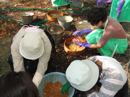 第1回ぎんなん加工 公開日 2006/10/19 更新日 2006/10/19 PTA活動 鳥小の年中行事である「ぎんなん加工」の第1回目を行いました。バケツ40杯分の銀杏を銀杏洗濯機と手作業で加工しました。 篠原小も今年は銀杏が豊作だったので、本校と合同で行いました。