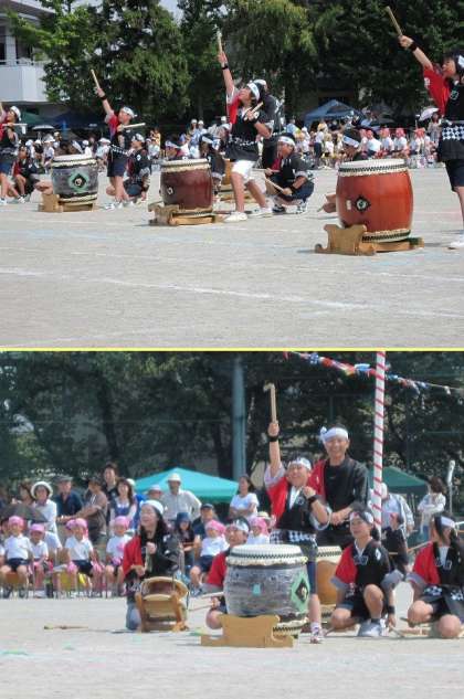 和太鼓クラブの発表 1・2年ダンス「ジンギスカン」 の様子です。