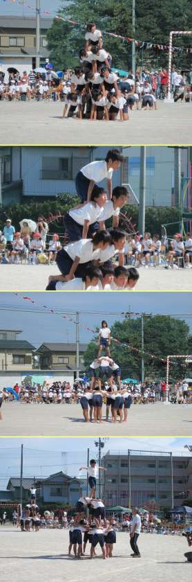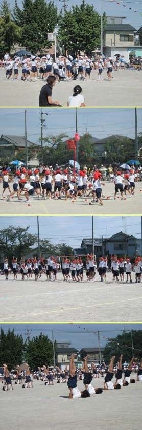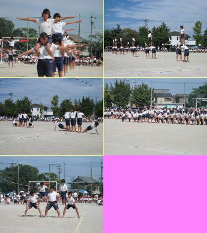 1年「玉入れ」 5・6年「組み立て体操」の様子です。