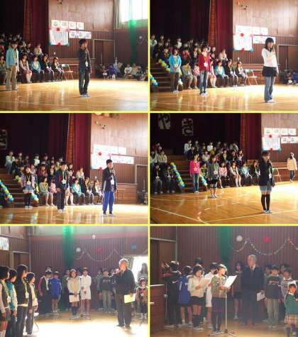 6年生を送る会1 公開日 2010/03/03 更新日 2010/03/03 お知らせ 3月2日(水)1・2時間目に「6年生を送る会」を行いました。 各学年の出し物・部活動の引継ぎ・在校生の贈る言葉・先生たちの出し物・6年生のお礼の言葉と歌など会場がせつなく温かい雰囲気に包まれました。 6年生は5・6時間目に6年間の感謝の気持ちをこめ、校内清掃に取り組みましたが、全員一生懸命に校舎等を磨いていました。いい卒業式が迎えられることでしょう。
