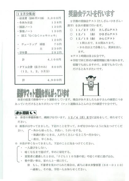 1年学年通信です。