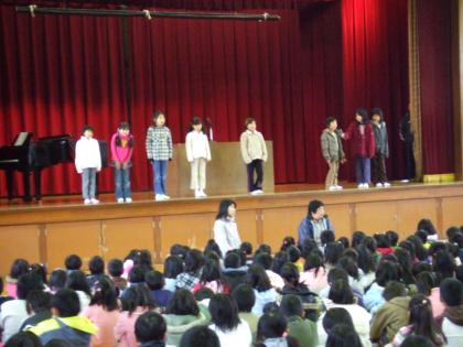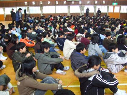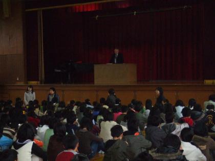 校長先生の2学期のさまざまな行事について、また、日本漢字能力検定協会が公募で選ぶ今年の漢字「命」についてのお話をみんな真剣な表情で聞いていました。その後、3年生の頼もしい誓いの言葉発表、生徒指導の先生から冬休みの生活についての注意がありました。