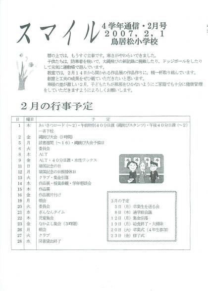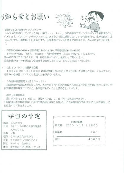4年生 学年通信2月号です。