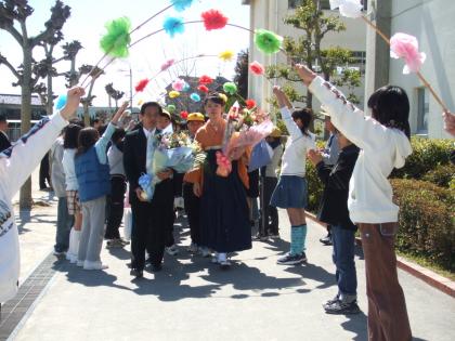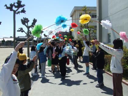 4・5年生が、花のアーチでお見送りしてくれました。4・5年生のみなさん、準備・片付けご苦労さまでした。