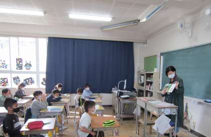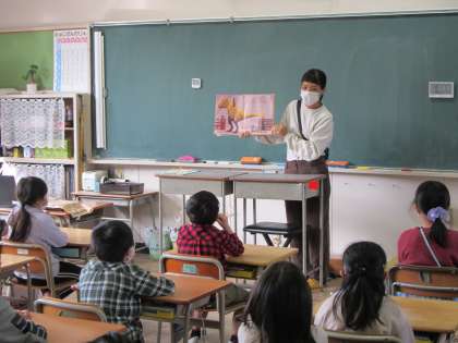 10月12日(水)読み聞かせ 公開日 2022/10/12 更新日 2022/10/12 児童のようす 昨日より読書週間が始まりました。読書週間の期間中、「わくわく絵本の会」の皆さんが来校し、読み聞かせをしてくださいます。今日は、2年生の児童にお話を読んでくださいました。「わくわく絵本の会」のメンバーの方が児童に語りかけながら、気持ちを込めてお話を読み進めていきます。児童もそれに応えながら、お話の世界に入って楽しく聴くことができました。