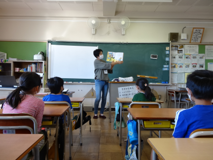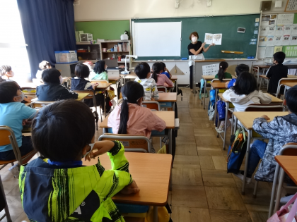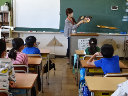 10/14 3年生その114 2組 絵本の会の方による読み聞かせ 公開日 2022/10/14 更新日 2022/10/14 3年生 絵本の会の方に読み聞かせをしていただきました。100円に無限の可能性を感じる絵本や、道徳の教材で読んだ「友だち屋」の続き、一見スイーツに見えてそうではない驚きの本、おいしそうなパンが出る本。様々な種類の絵本を読んでいただき、興味深そうに聞いていました。