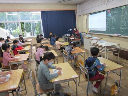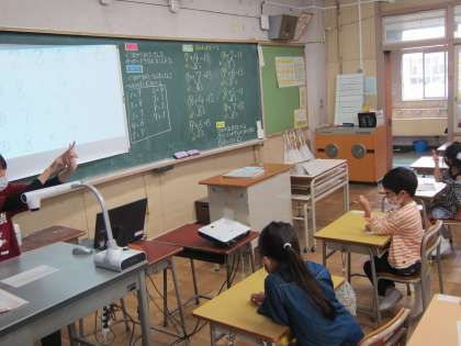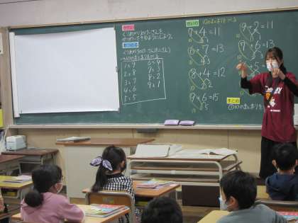 10月18日(火)1年生授業風景 その1 公開日 2022/10/18 更新日 2022/10/18 児童のようす その1は、算数の様子です。10の補数を利用した計算の仕方を言葉で唱え、繰り上がりのあるたし算を練習しているところです。