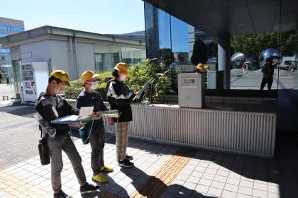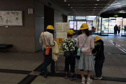 総合的な学習の時間の福祉に関する学習の一環で、春日井市役所・文化フォーラムの見学に行きました。地図を手に、点字ブロックやスロープなどのバリアフリー箇所を探しました。グループで協力し、たくさん見つけることができていました。今後、調べたことをもとにまとめの学習をする予定です。