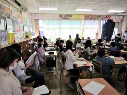 10月20日(木)、児童が自己肯定感を高めるきっかけとなるよう、「自分発見−ぼく・わたしのいいところ見つけ−」をテーマに今年度の学校保健委員会が開催され、発表等の様子はリモートで校内に中継されました。そして、参加されたPTA代表の皆様、学校医の先生が教室で4・5・6年児童が活動する様子を参観しました。