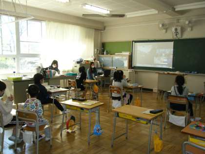 今週の授業の様子です。社会では、消防署の仕事について学習しました。