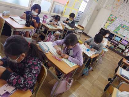 円の直径の学習をしました。切り取った円を折ったり、線を引いたりしながら直径はどのようなものか理解を深めることができました。