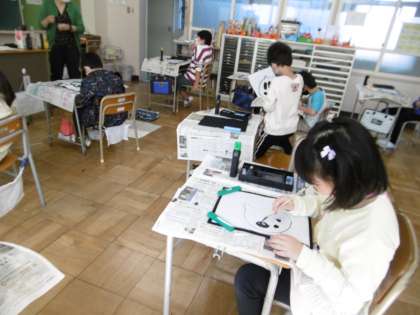 3時間目の書道科の授業の様子です。大筆の動かし方に慣れるためにウサギを一筆書きで描きました。とても楽しそうで、色々なかわいいウサギが描けました。