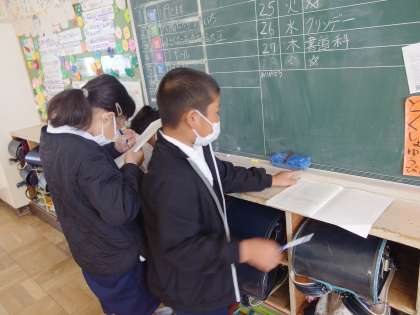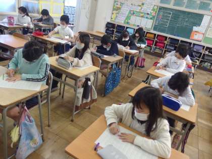 モジュールの時間に奨励会テストの勉強をしました。みんな集中して漢字を練習することができました。