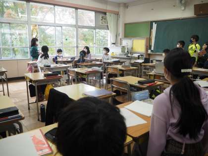 今回は「給食の前後静かに過ごすには」という議題について意見を出し合いました。司会グループは話し合いを円滑に進めるために、意見が出ないときには、近くの人と相談をする時間を設けたり、見やすい表にまとめたりしてそれぞれが工夫しながら役割をこなしていました。