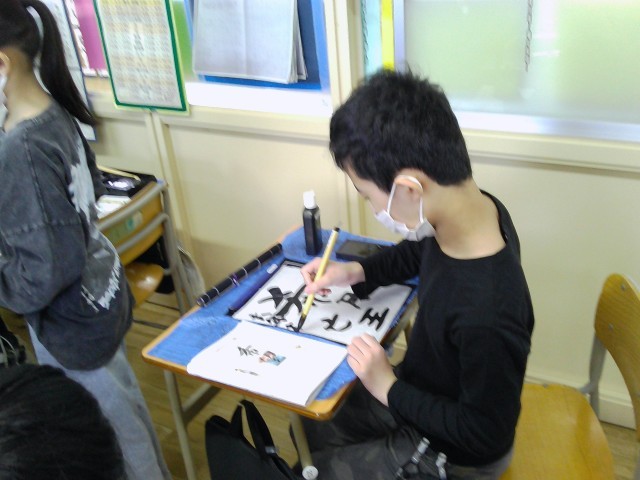 今回は「好きな言葉を書く」と題して、自分で決めた言葉を毛筆で表しました。