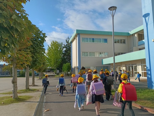 秋晴れのもと、鳥小っ子の皆さんが元気に登校してくれました。
