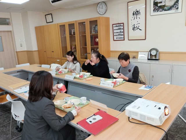 今回は、授業参観に加え、給食の試食をしていただきました。