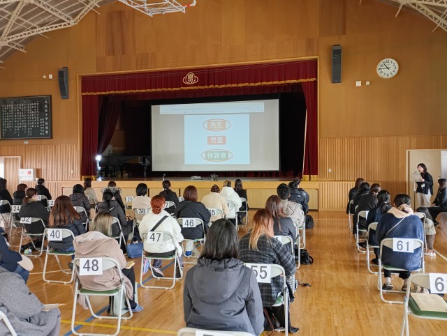 新入生の保護者の皆様に集まっていただき、学校からのお願いやPTAについて、学用品の購入などが行われました。