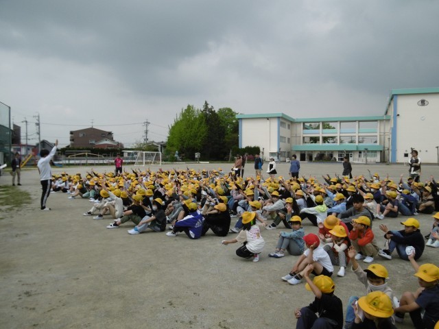 避難訓練の様子です。新しい教室からの避難経路を確認しながら、どの児童も真剣に取り組むことができました。