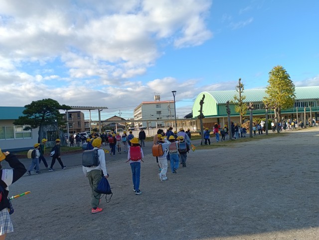 風が強く吹く中、高学年の班長を中心に落ち着いて整列、下校ができました。