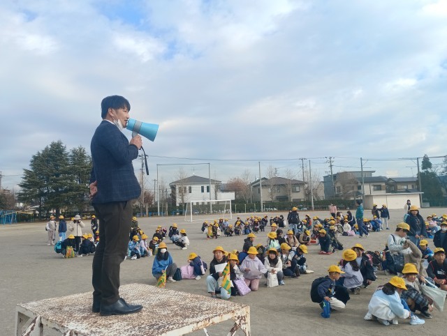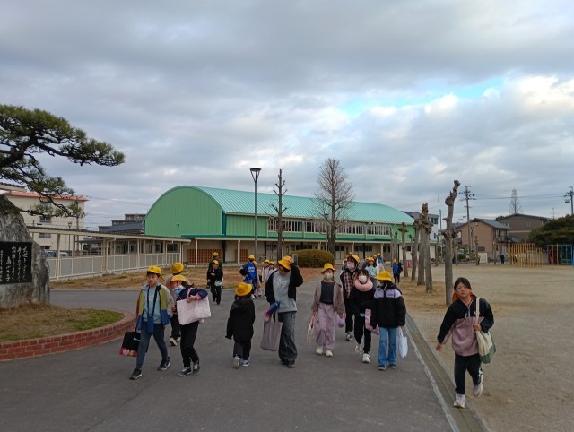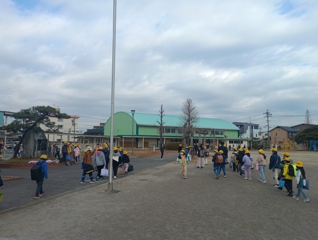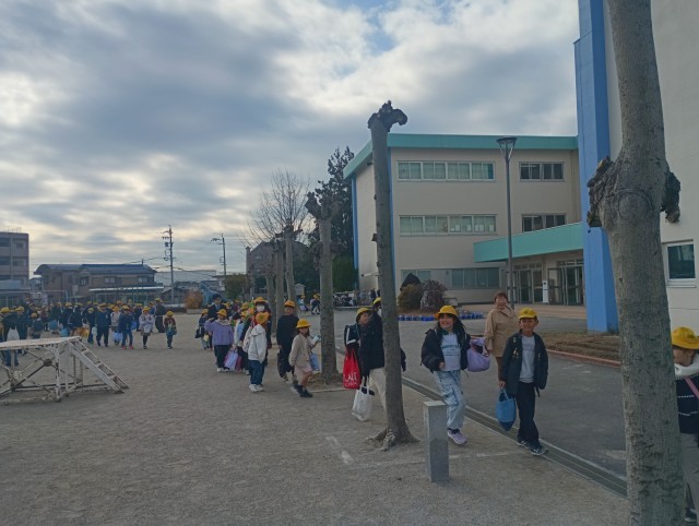 風が強く吹く中、高学年の班長を中心に落ち着いて整列、下校ができました。