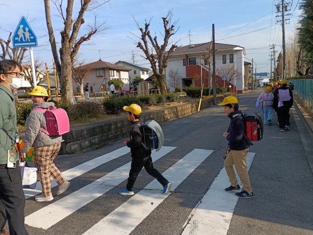 鳥小防犯の皆様による見守り下校の様子です。