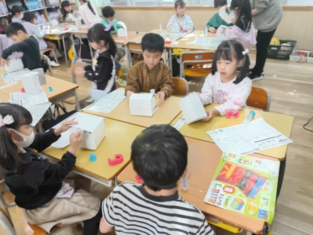 のり付けに苦戦しながらも、箱の形を作ることができました。