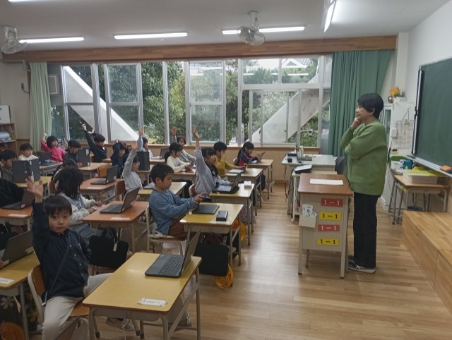 1年2組での研究授業の様子です。