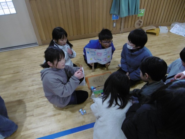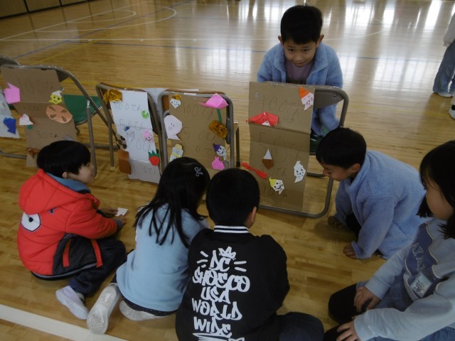12月8日(月)1・2年生の様子です。2年生が1年生を招待し、おもちゃまつりを行いました。1年生が喜んでくれるように、一生懸命準備を行い、お店番をしました。