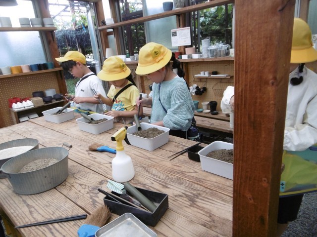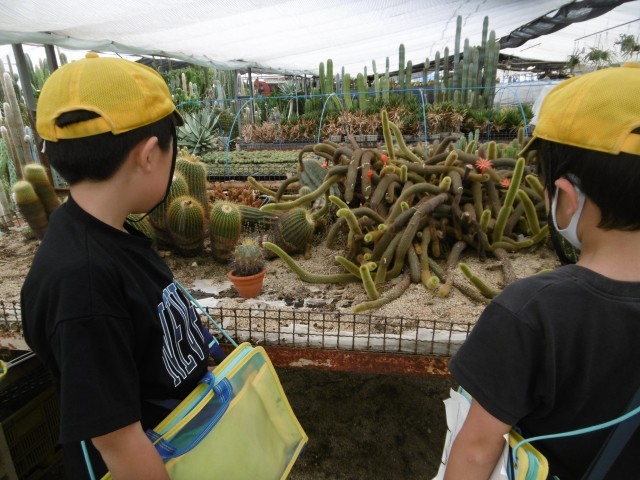 午後は後藤サボテンへ行きました。サボテンの寄せ植え体験をしたり、お気に入りのサボテンの名前や特徴をしおりに書き込んだりしながら見学しました。