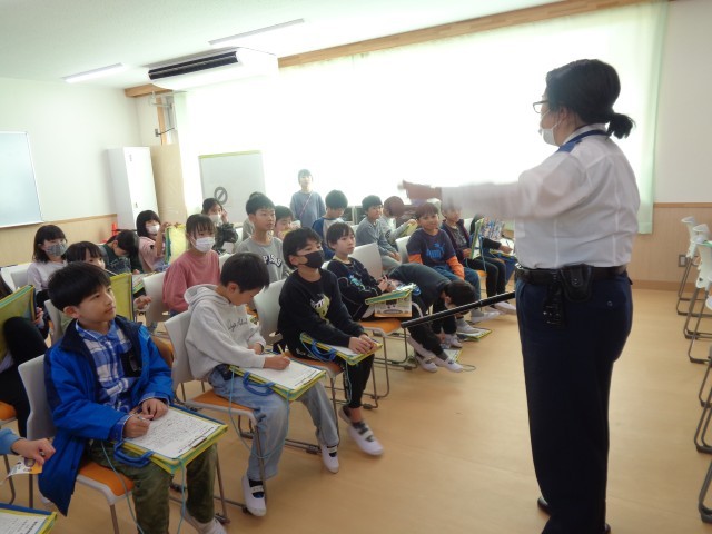 今日は、社会の授業で学習している「まちの安全を守る活動」について、春日井警察署の方にお越しいただき、直接お話を聞かせていただきました。