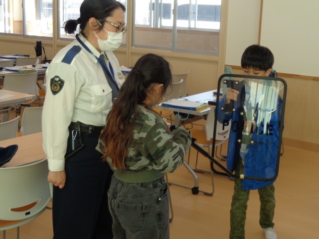 ​特に盛り上がったのは、警察官が身につけている装備品の紹介です。本物の手錠や警棒、無線機などを間近で見せていただき、子どもたちは「重そう!」「すごい!」と興味津々。自分たちの生活が、こうした努力によって守られていることを肌で感じることができました。