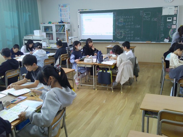 班で話し合いながら、解き方を選び、どんどん問題を解いていきます。