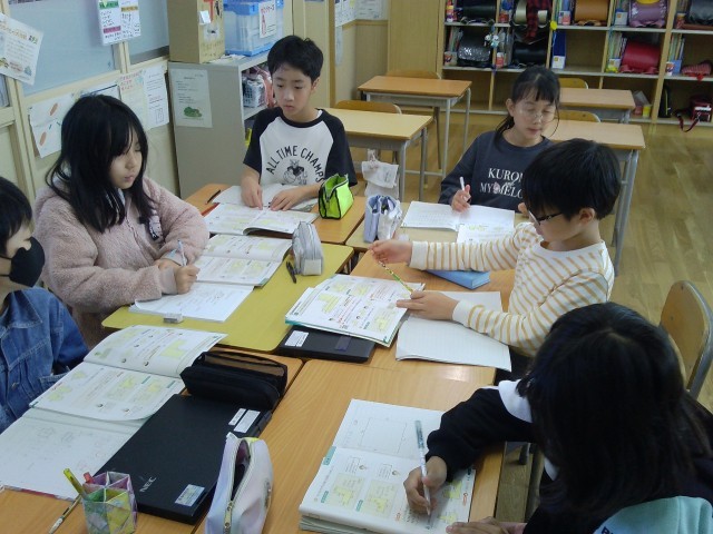 自分の考えや意見、思いを友だちと共有し話し合っています。