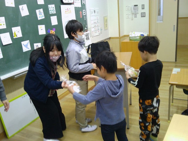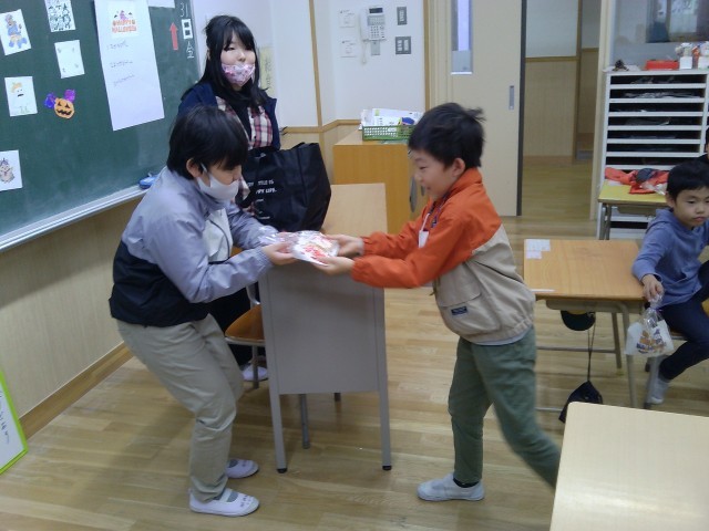 5組・6組・7組・8組 +2 10月31日(金) 今日はハロウィンということで、パーティーを行いました。 自分たちで準備をして、計画を立てての手作りパーティーです。 最後は「Trick or Treat!」と言ってお菓子のプレゼントです。 実は、このお菓子のプレゼントは、6年生が買い物に行き準備をしてくれたものなんです。 6年生の皆さん、ありがとう! とっても楽しい、笑顔いっぱいのパーティーになりました!