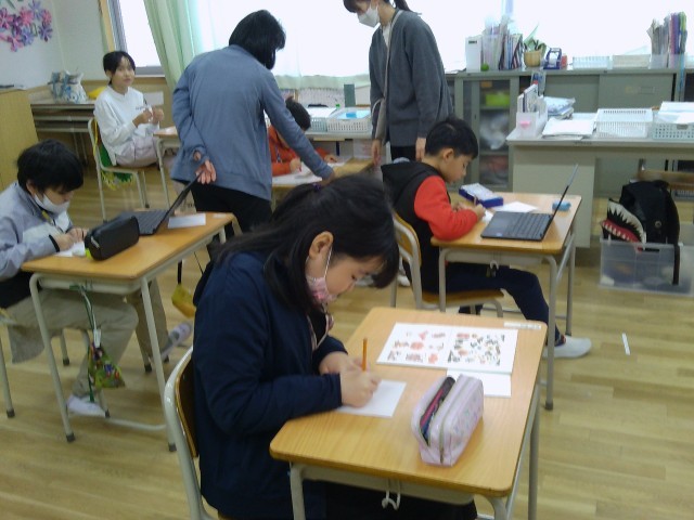 5組・6組・7組・8組 10月10日(金) ブロック交流会に向けて、景品づくりです! 今年の景品は、へびのおもちゃです。 みなさんに喜んでもらえるように、がんばって作っています!