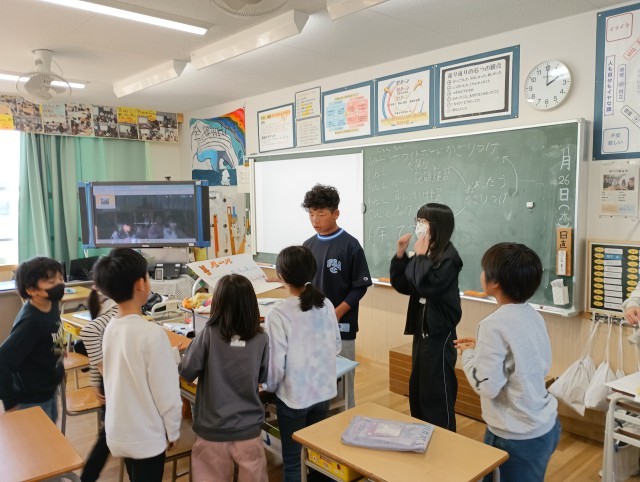体育館はもちろん、それぞれ視聴している各教室からも笑い声が聞こえてきたり、音楽に合わせて自然と体を動かしたりするなど、とても盛り上がっている様子が見られました。