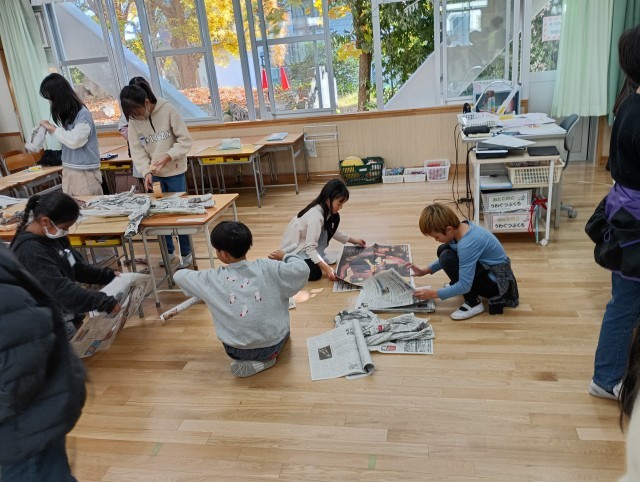 11月24日(木)の5時間目、明日開催予定の児童会行事「いちょうまつり」の準備を、なかよし班ごとに行いました。