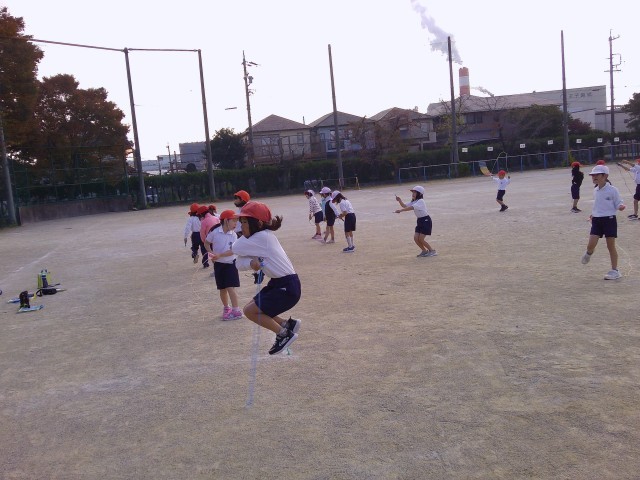 11月17日(月)1年生の体育の様子です。今日は縄跳びで「あや跳び」の練習をしま...