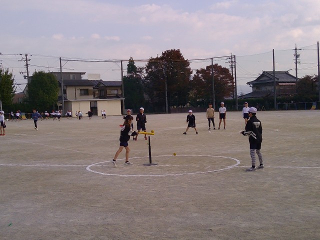 11月17日(月)4年生の体育の様子です。今日はティーボールに挑戦です!バッティ...