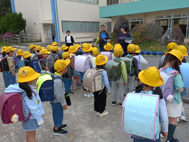 4月13日(火)1年生の学年下校の様子です。今日は1年生だけの下校です。通学班の...
